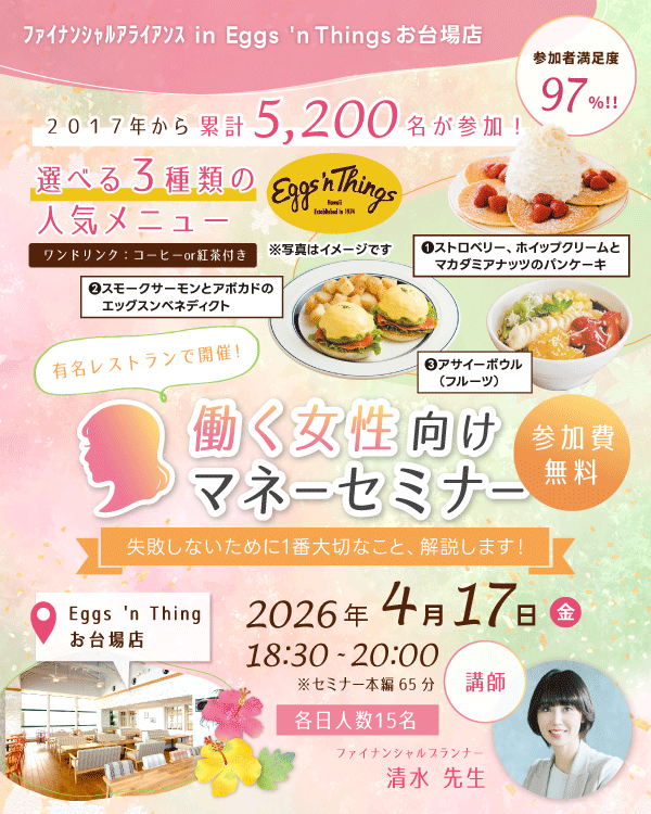 働く女性向けマネーセミナー in Eggs 'n Things お台場店 | 働く女性向けマネーセミナー